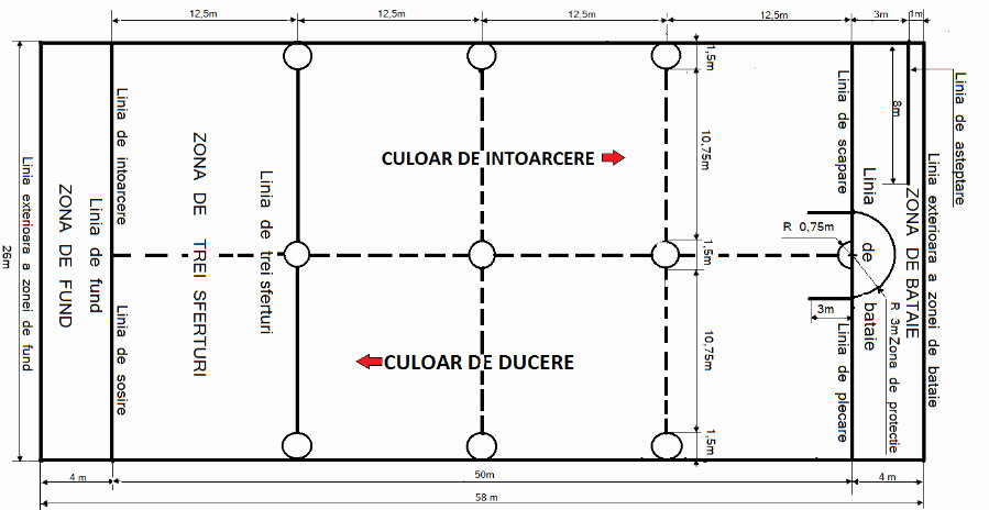 a) Jucatorii ocupa în teren spatiile marcate in acest sens si anume cele 9 cercuri (6 marginasi si 3 mijlocasi), respectiv zona de bataie (fruntas) si zona de fund (fundas).